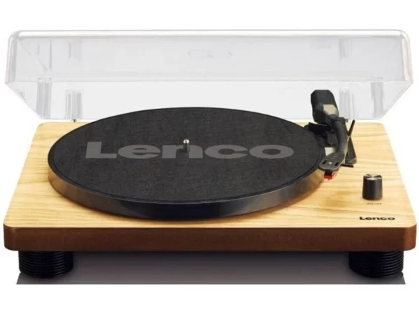 O gira-discos Lenco LS-50 apresenta uma estrutura em madeira MDF com dois altifalantes integrados e um prato de 300 mm de diâmetro. Em destaque neste gira-discos Lenco LS-50, a porta USB para conexão ao computador e fácil conversão de discos de vinil em formato digital, não esquecendo o amplificador estéreo incorporado. Ainda em evidência no gira-discos Lenco LS-50, o contrapeso ajustável, as três velocidades disponíveis (33 1/3, 45 e 78 rpm) e a transmissão por correia. Outras características relevantes: cobertura antipó removível; cartucho de cerâmica; saída de linha RCA; agulha extra incluída.