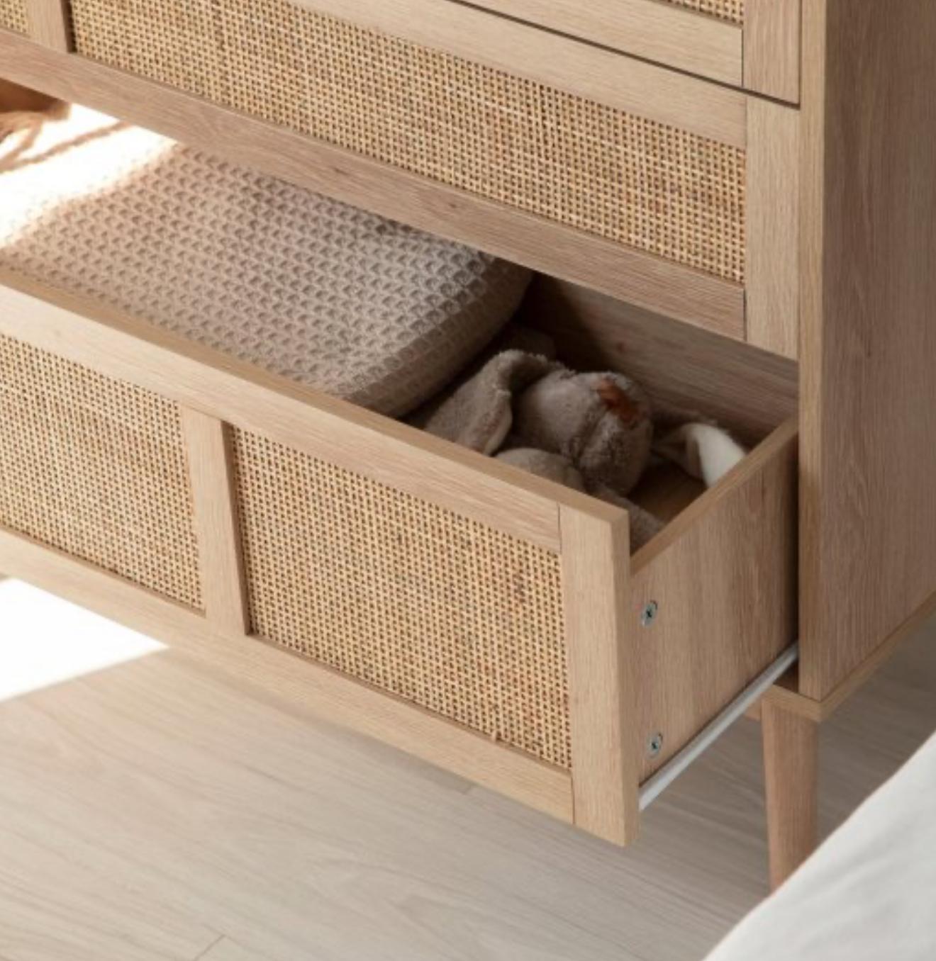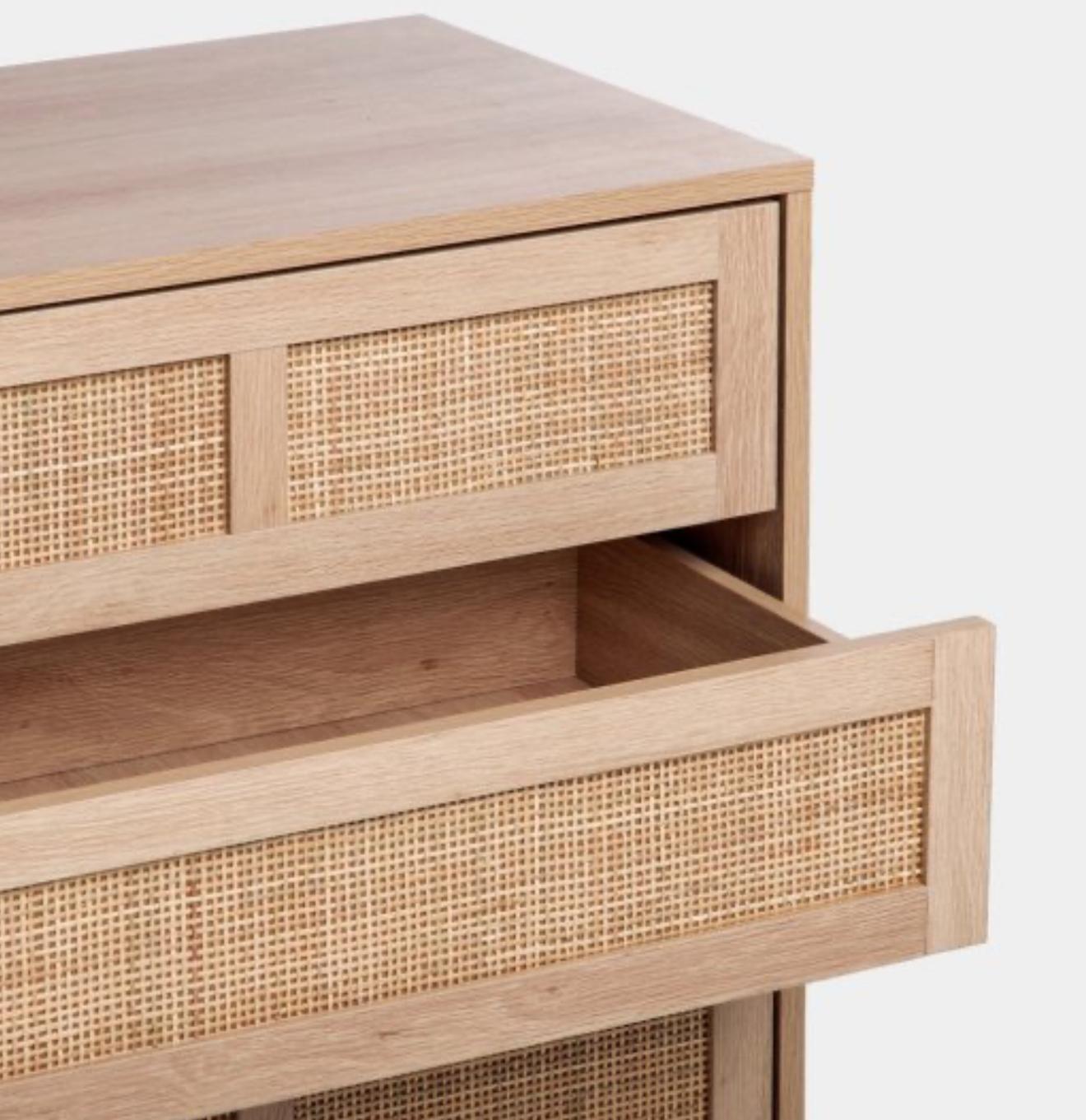 Cómoda infantil de 3 gavetas em madeira cor natural e rattan natural