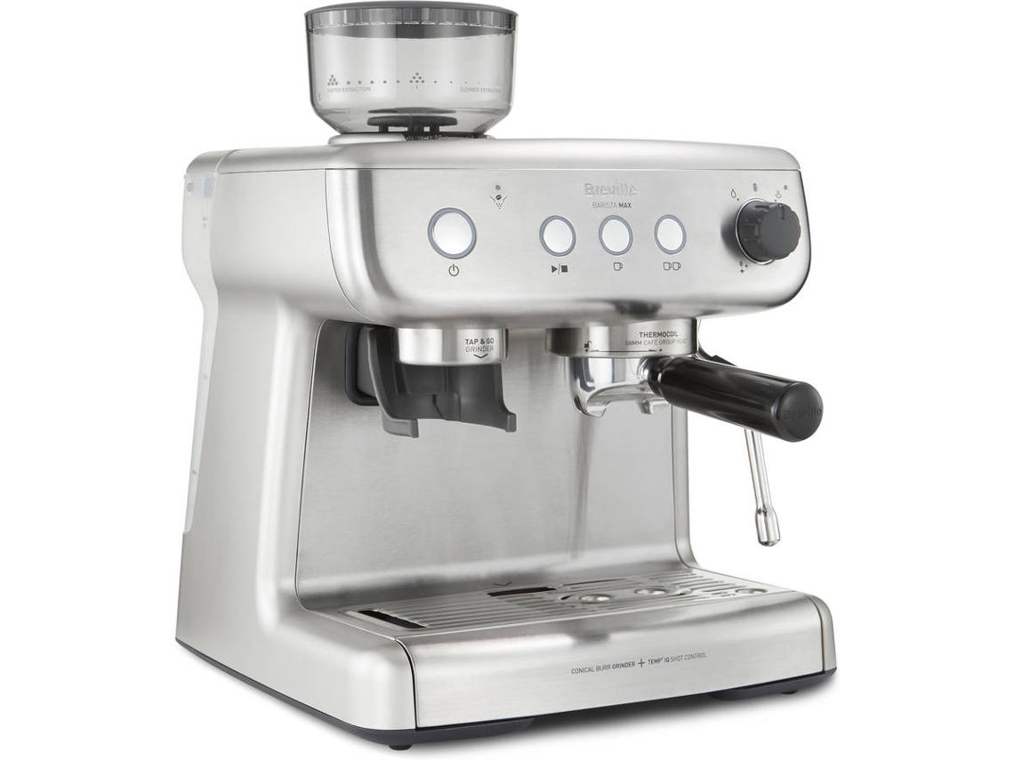 Os apreciadores do café podem encontrar nesta máquina de café expresso o verdadeiro prazer do ritual de tomar café. O moinho removível integrado na máquina, proporciona até 30 possibilidades de ajuste para que possa encontrar a moagem perfeita de acordo com o tipo de grão que deseja degustar. Incorpora um aquecedor de aço inoxidável, para aquecer leite ou água para infusões de forma rápida e simples. Não menos importante, a máquina de café expresso Breville Barista Max vem com uma agulha de limpeza para que seja fácil tê-la sempre nas melhores condições. O design é um factor decisivo, mas, neste caso, a Breville equipou a Barista Max com todas as funções e programas para que se possa desfrutar de um excelente café, graças à bomba de pressão italiana de 15 bars. Esta pressão é excelente e garante uma preparação cuidada que respeita todos os sabores e aromas do grão. O porta-filtro profissional de 58 mm é compatível com todos os tipos de café e garante uma extração homogénea para preparar um café delicioso em casa, ao mesmo nível dos que são servidos por profissionais. Pode preparar uma ou duas chávenas de cada vez.