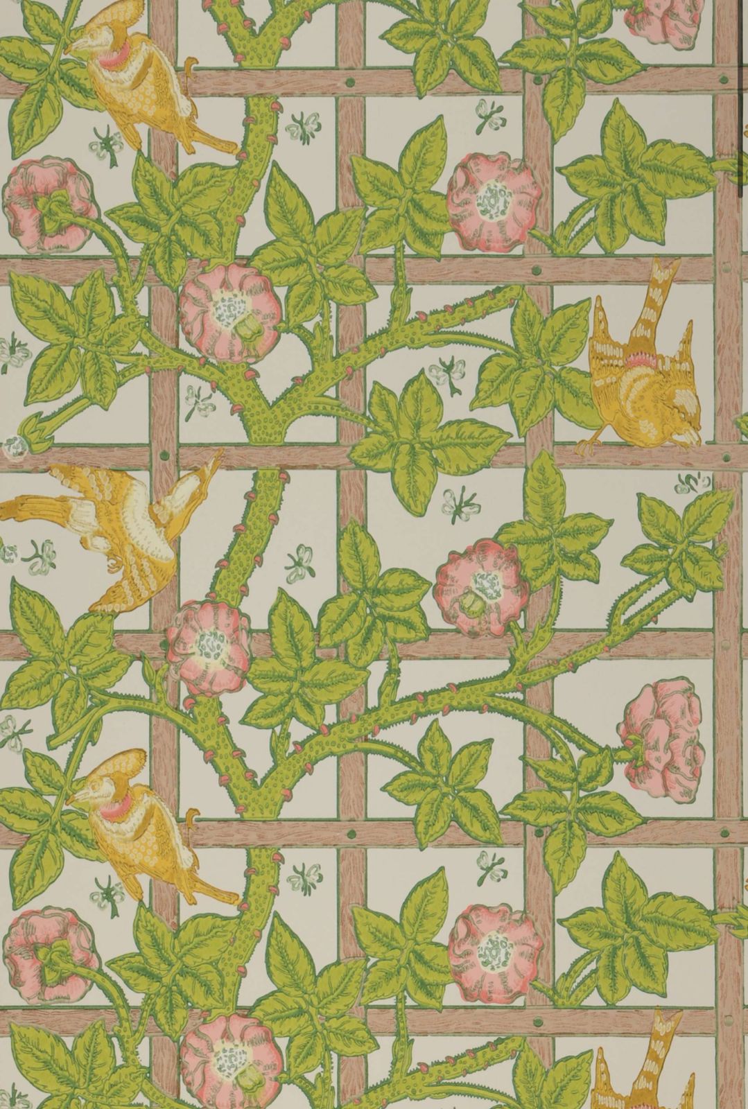 Flores gavinhas, Treliça, Rosas, Borboletas, Pássaros