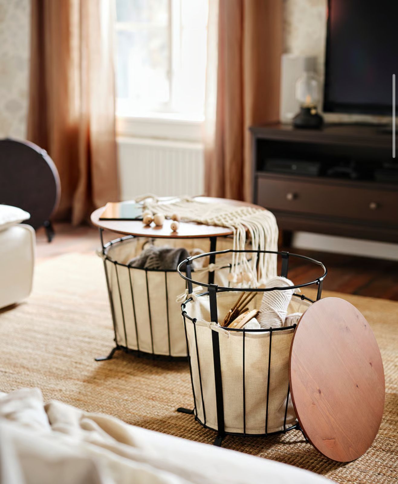 Na mesa de arrumação ÄNGESBYN, pode guardar tudo, desde mantas a jornais e materiais de passatempos: tudo o que quer ter sempre à mão.